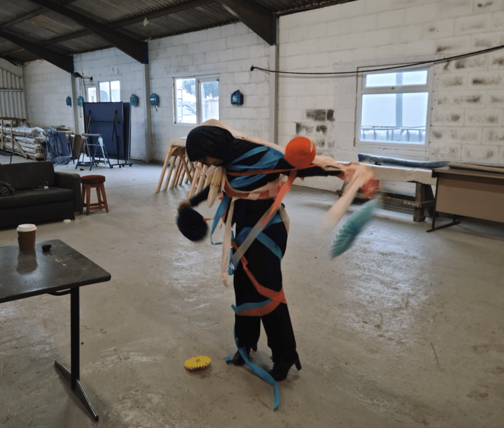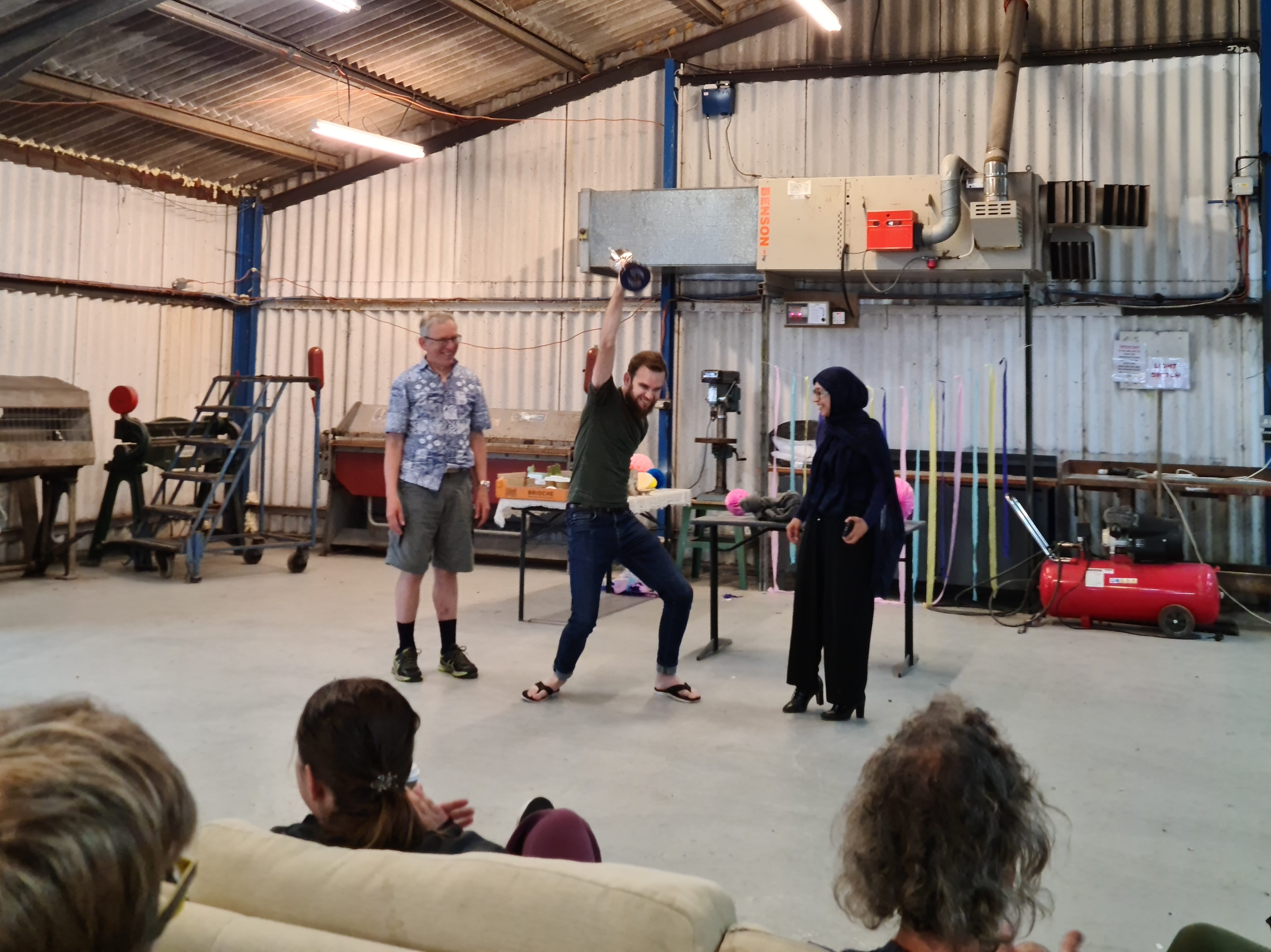 Then we all had tea, cake and coffee, I stole a paper pompom as my rightful third prize, and then for some reason we draped Hania in the decorations.